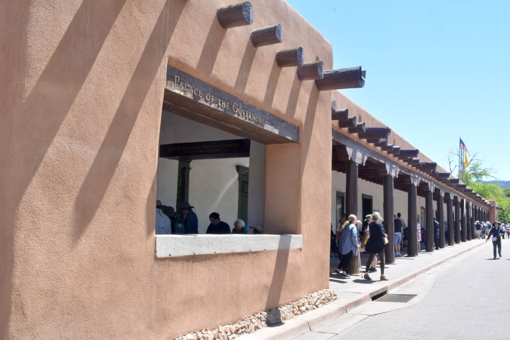 I took the train from Placitas to Santa Fe. The Road Runner as the train is known, is great and runs from Albuquerque to Santa Fe and it cost me a grand total of one US dollar. The train runs through ranch country, passing through Indigenous Pueblos and small settlements. The rural areas of New Mexico look a little poor in places with run down looking homes and collections of old broken down vehicles. This is in stark contrast to the city of Santa Fe,